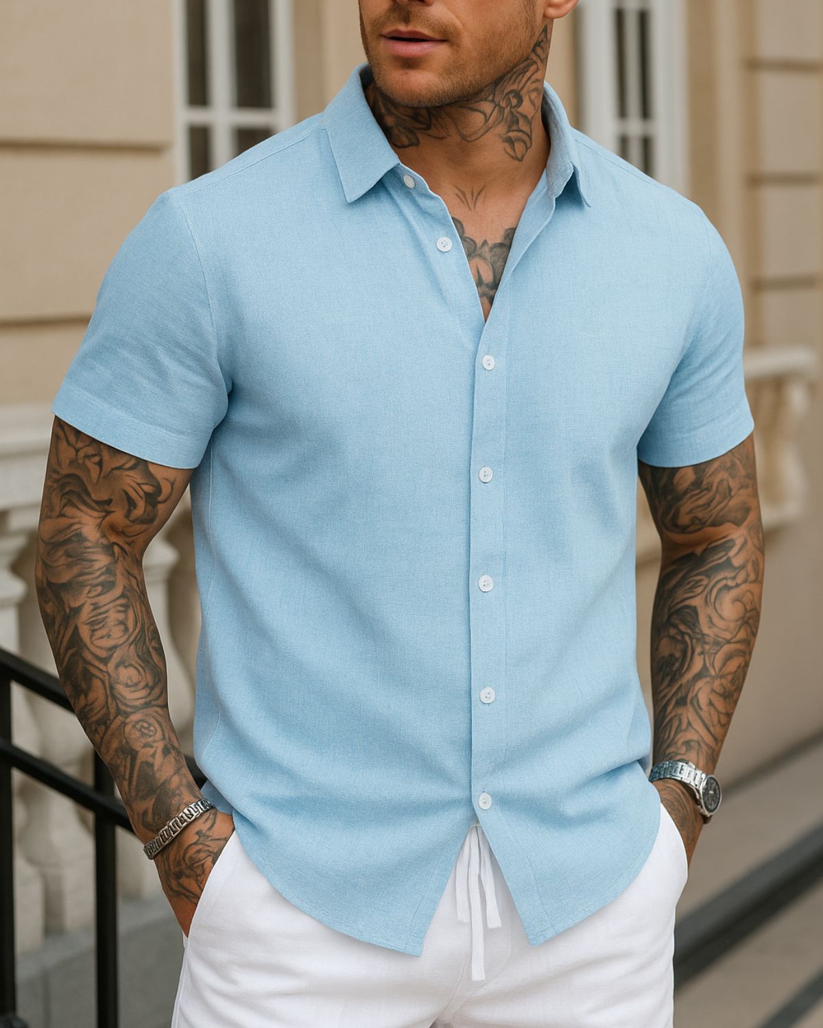 Men's Grandad Collar Polo Shirt – Contrast Trim, Slim Fit Smart Casual